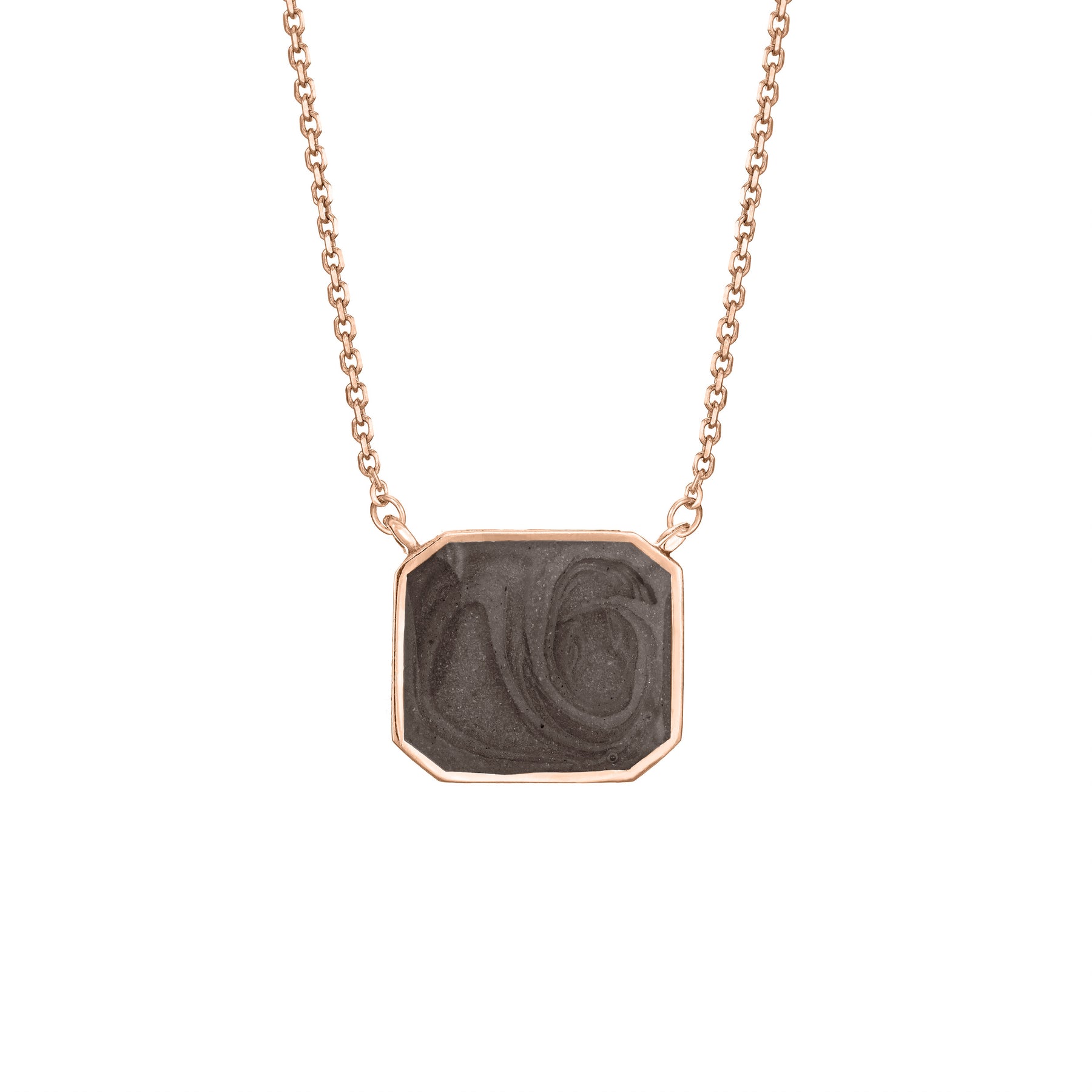 This 14k rose gold vintage-inspired art deco necklace was crafted with a cushion setting for your loved one's ashes.