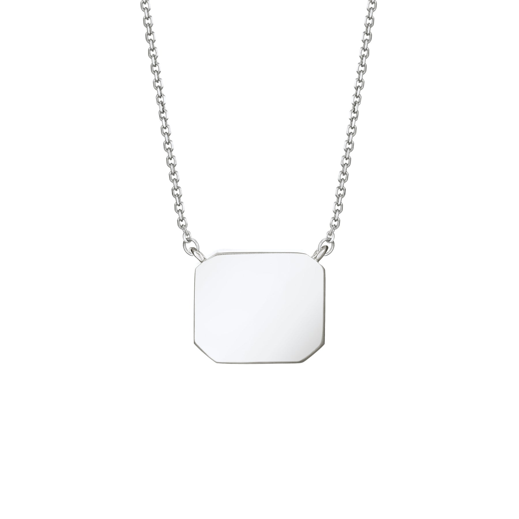 The cushion art deco pendant and its attached chain are both .925 sterling silver. If you are interested in a different length of chain than the options offered, please reach out via the contact form below or email us at closebyme@gmail.com.