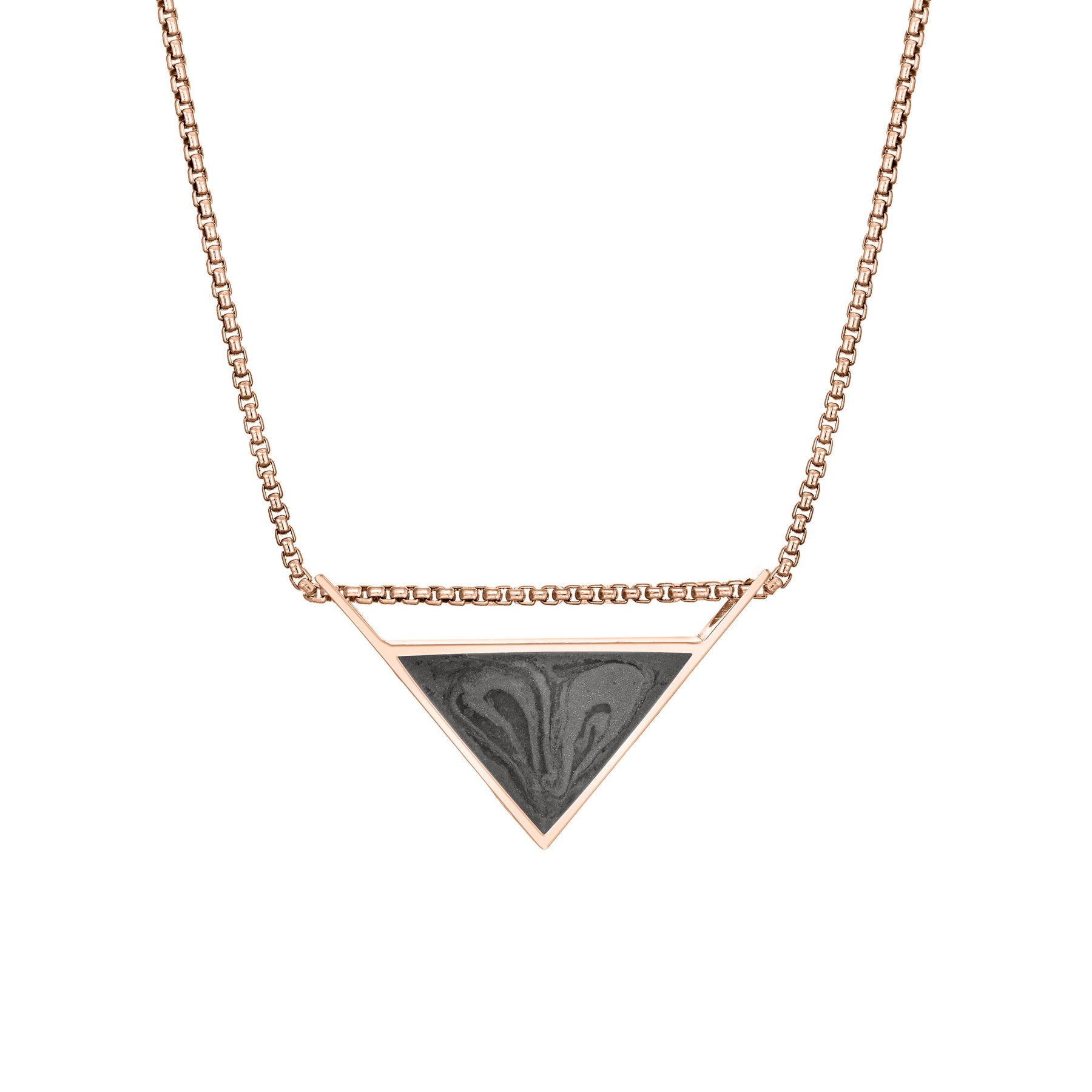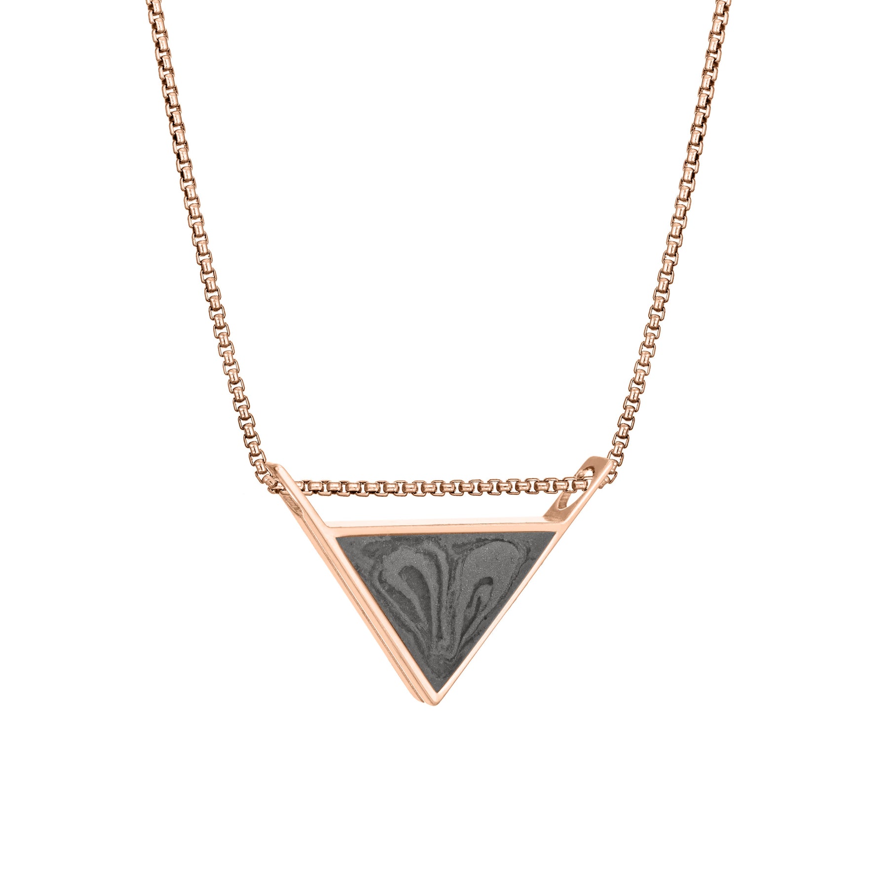 Represent your unique connection with this 14k rose gold detailed sliding triangle pendant set with solidified ashes.