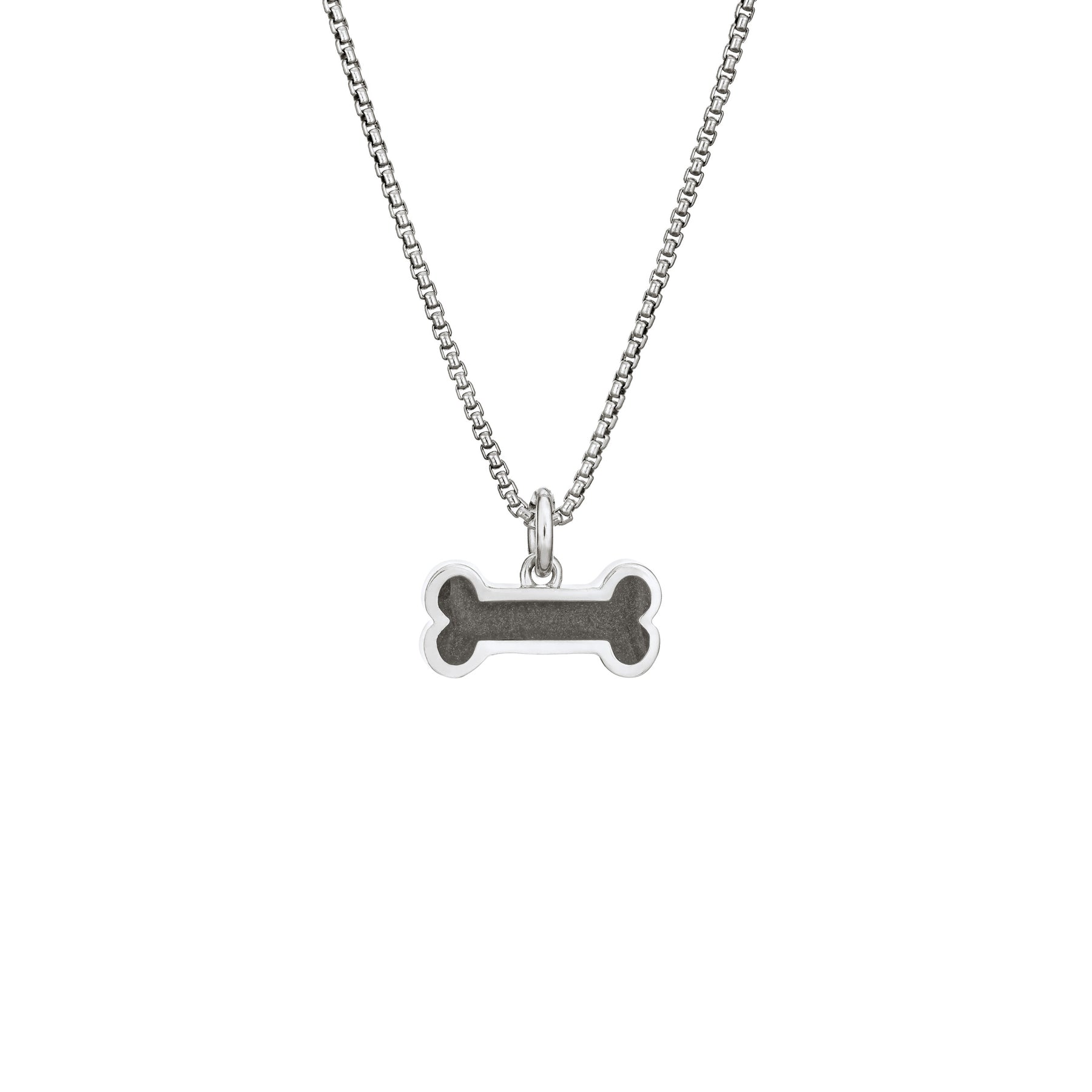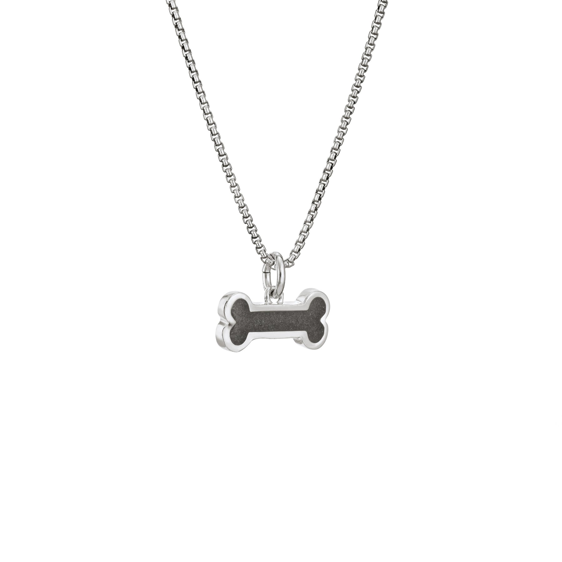 This playful toy-bone-shaped .925 sterling silver necklace can be set with the solidified ashes of any loved one, furry or otherwise, so they can be your companion on all of the walks to come. It comes with a sterling silver chain in the length of your choice from the options below.