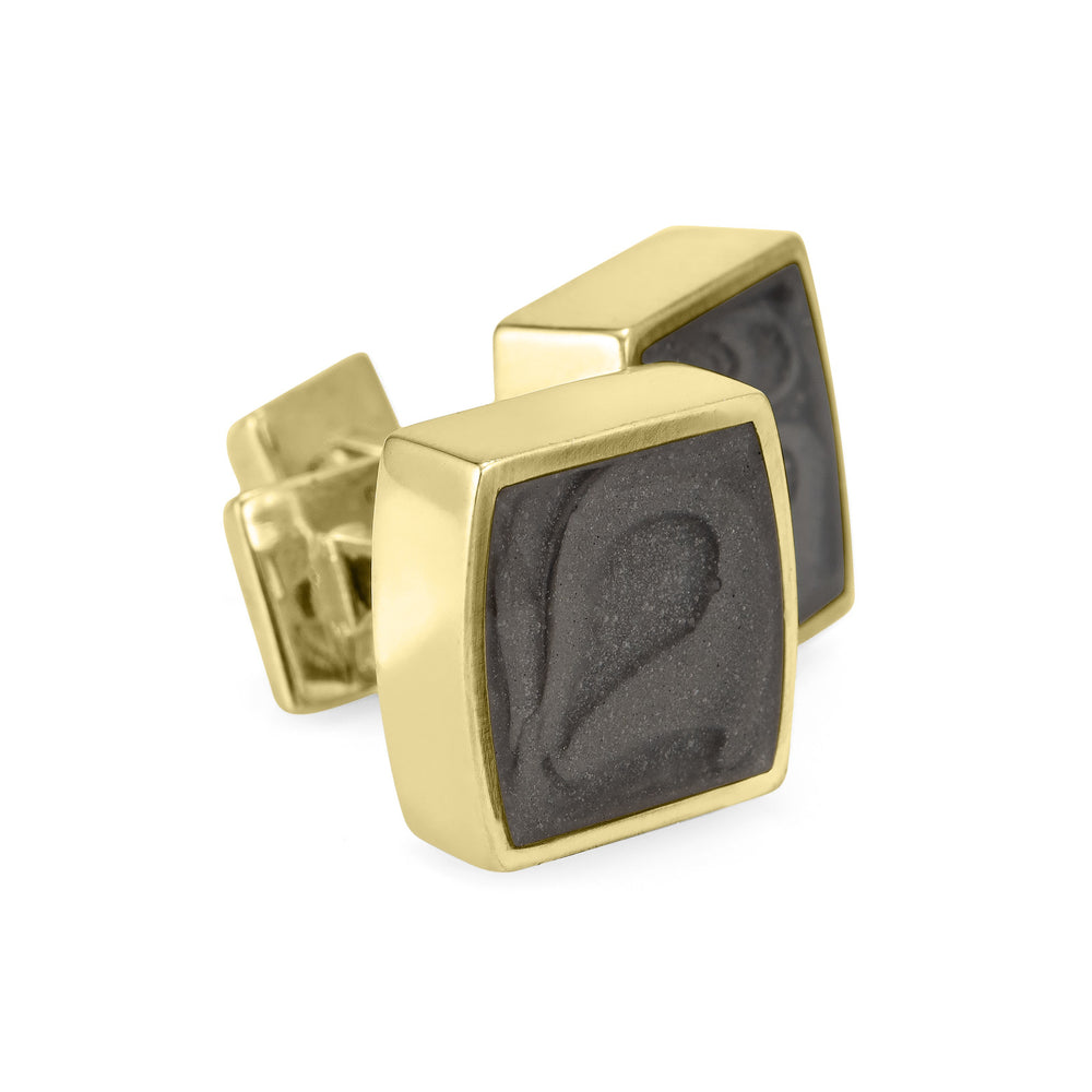 These refined 14k yellow gold square cufflinks offer a way to hold your loved one close for any special occasion. Whether for a wedding or other elegant gathering, let love walk beside and guide you with their solidified ashes near your pulse.