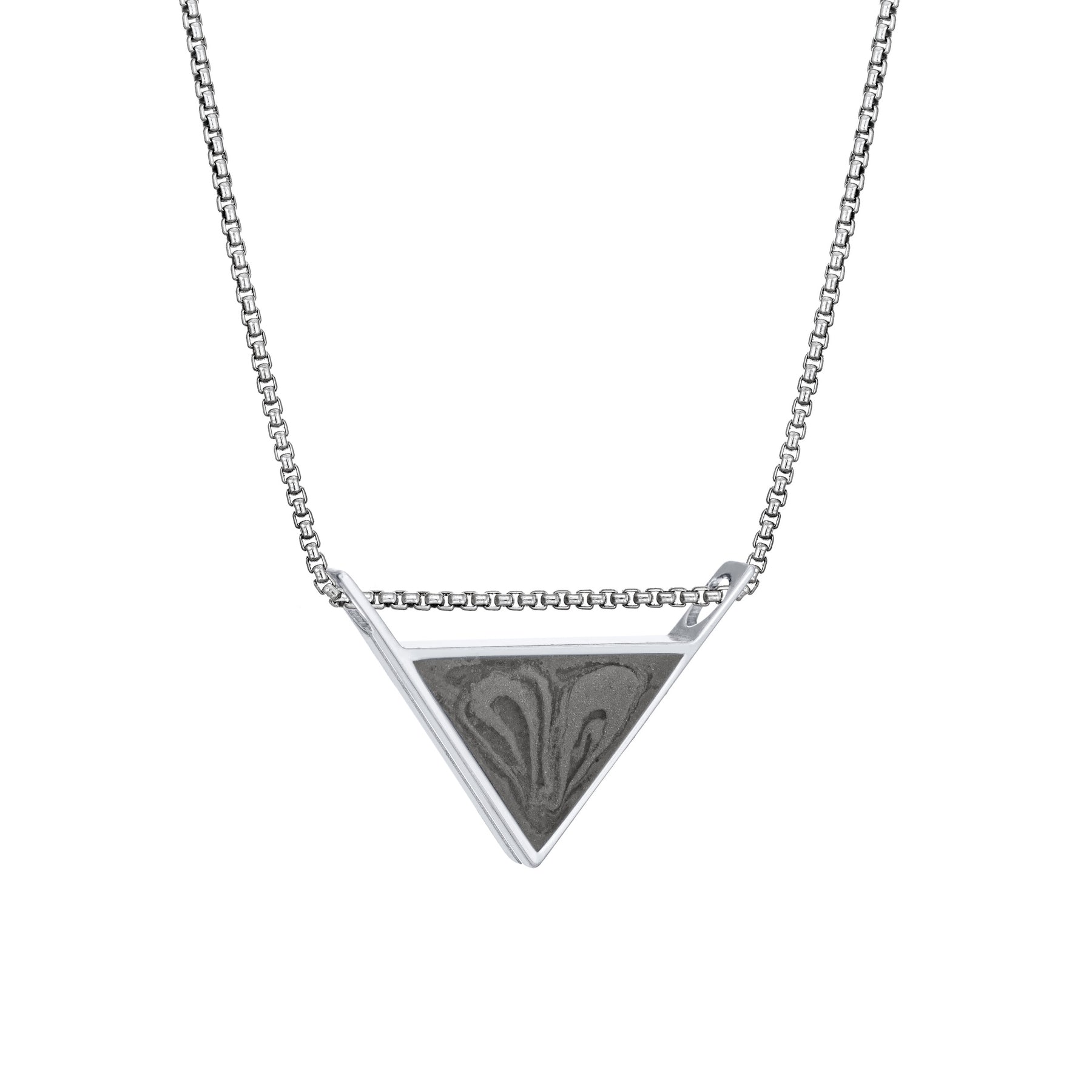 Represent your unique connection with this 14k white gold detailed sliding triangle pendant set with solidified ashes.